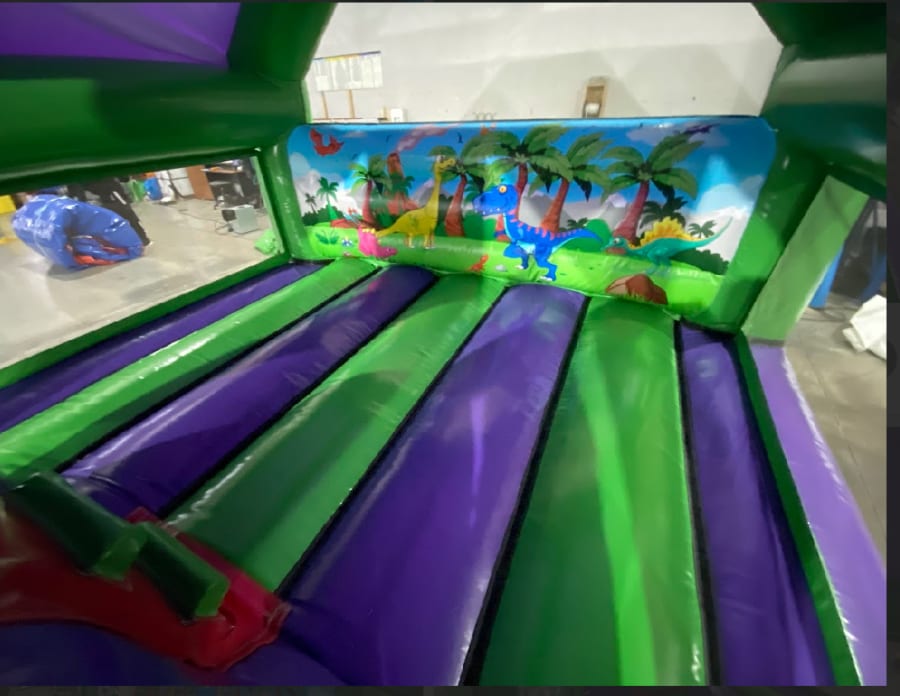 The large internal slide exits through the Dinos mouth featuring 3D teeth which adds to the thrill and excitement of this inflatable.