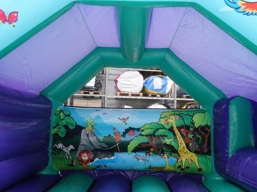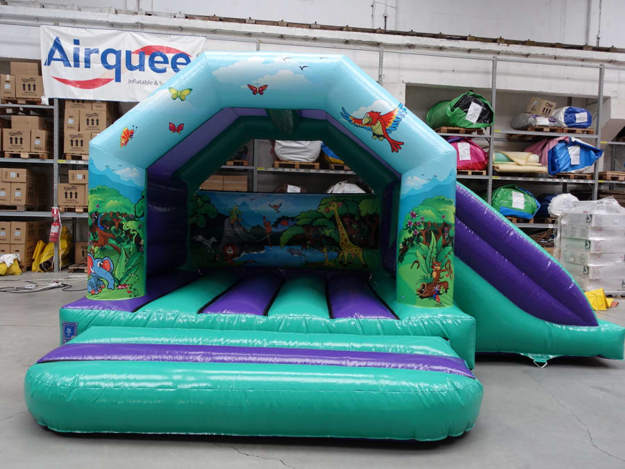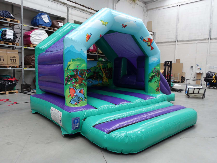 The jungle graphics are the perfect backdrop to the large bounce area and there is an added bonus of a side slide.
