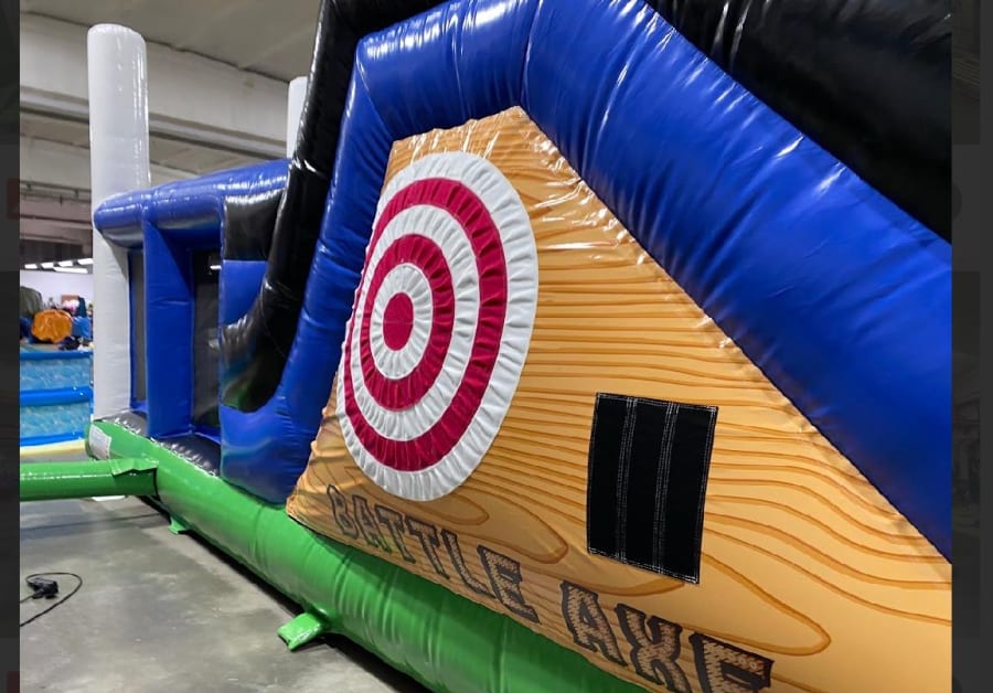 Meet our brand-new 2026 Football Obstacle Course, the one-of-a-kind, multi-sport inflatable that’s already sprinting to the top of our booking list! Perfect for kids’ parties, school sports days, community fairs and family get-togethers, this football themed obstacle course scores big with fans of football, baseball, basketball, soccer and Gaelic games. With basketball hoops and inflatable darts on either side, it’s a playfield of champions for every sport fanatic. 🏈🥅🏀